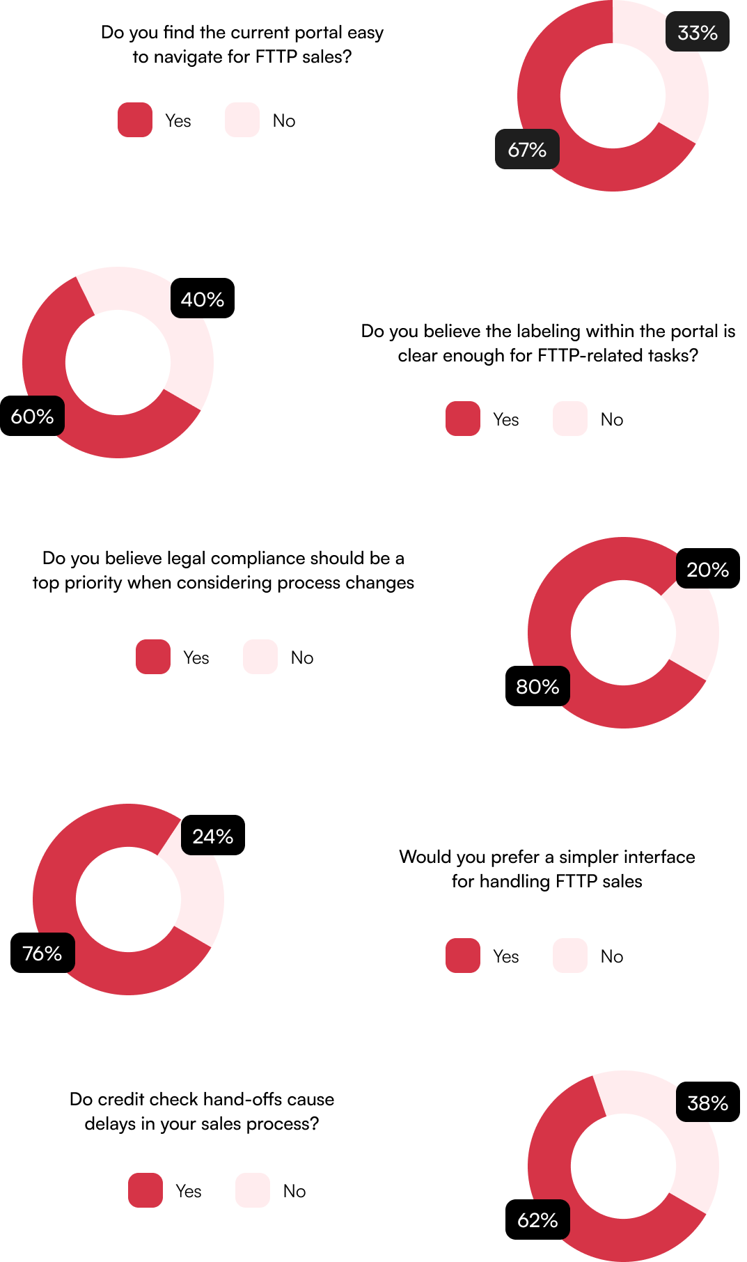 User Research: I've conducted thorough interviews and surveys with FTTP sales agents to grasp their pain points, needs, and preferences. We now have insights into their current workflow, challenges in onboarding new customers, and where the existing system falls short.