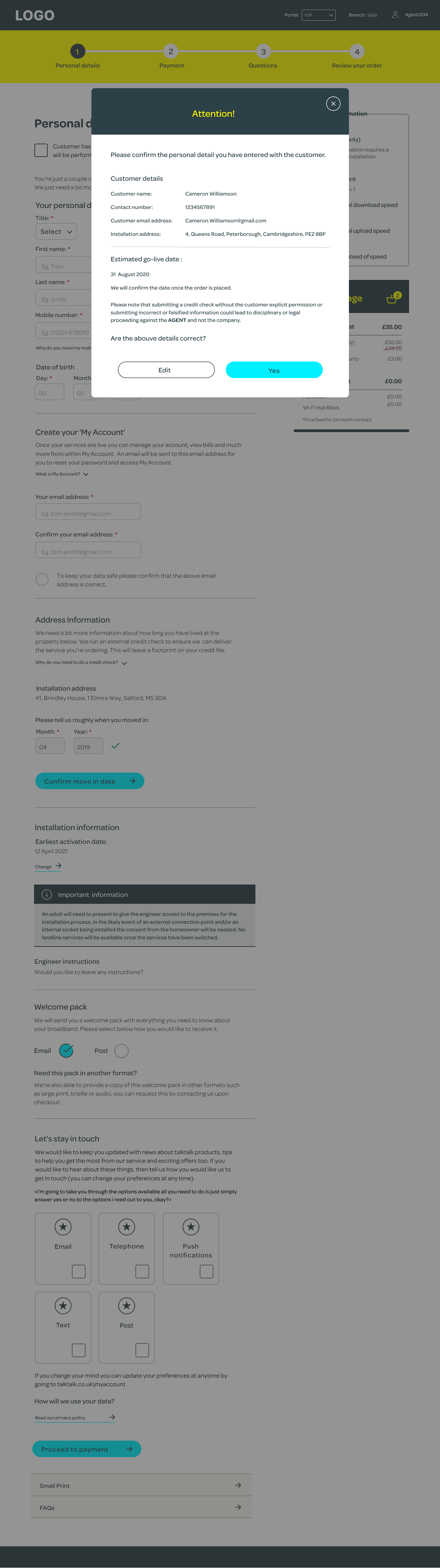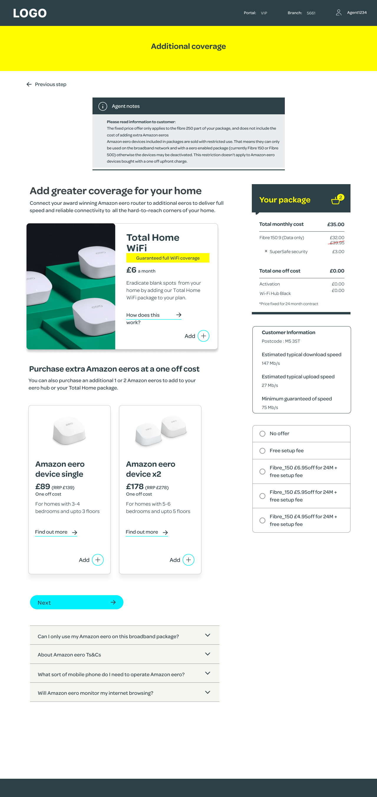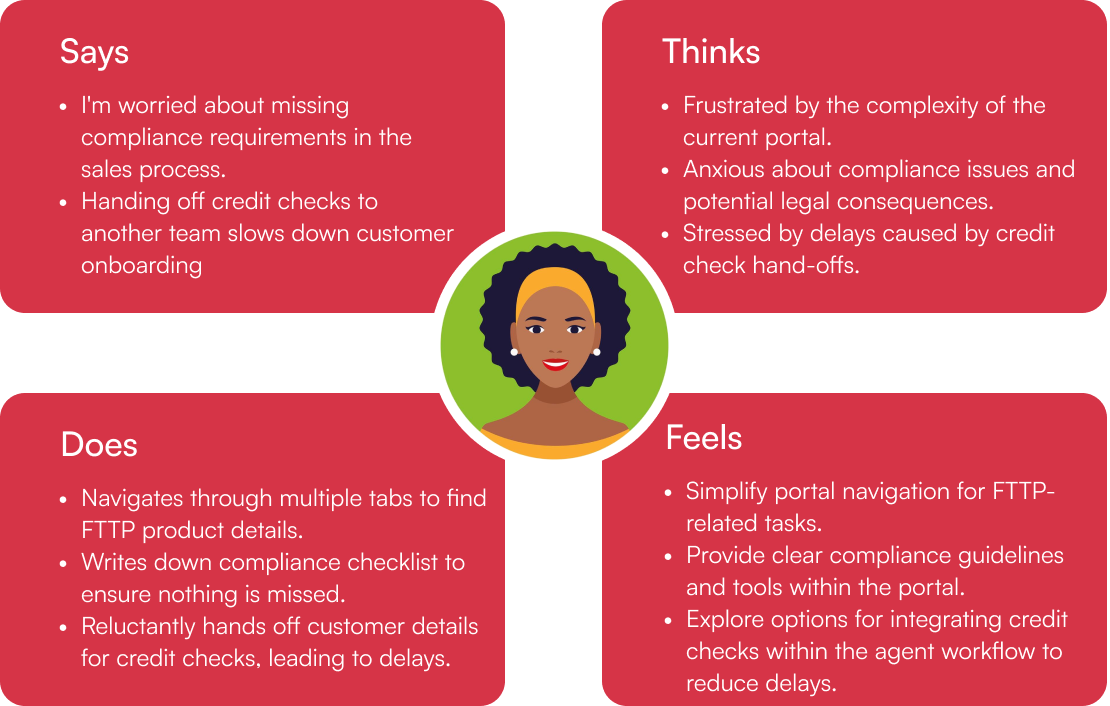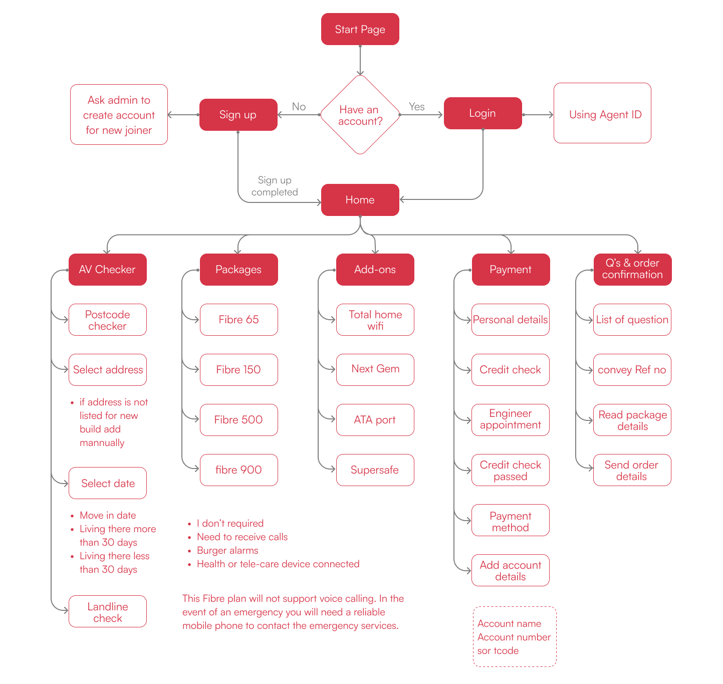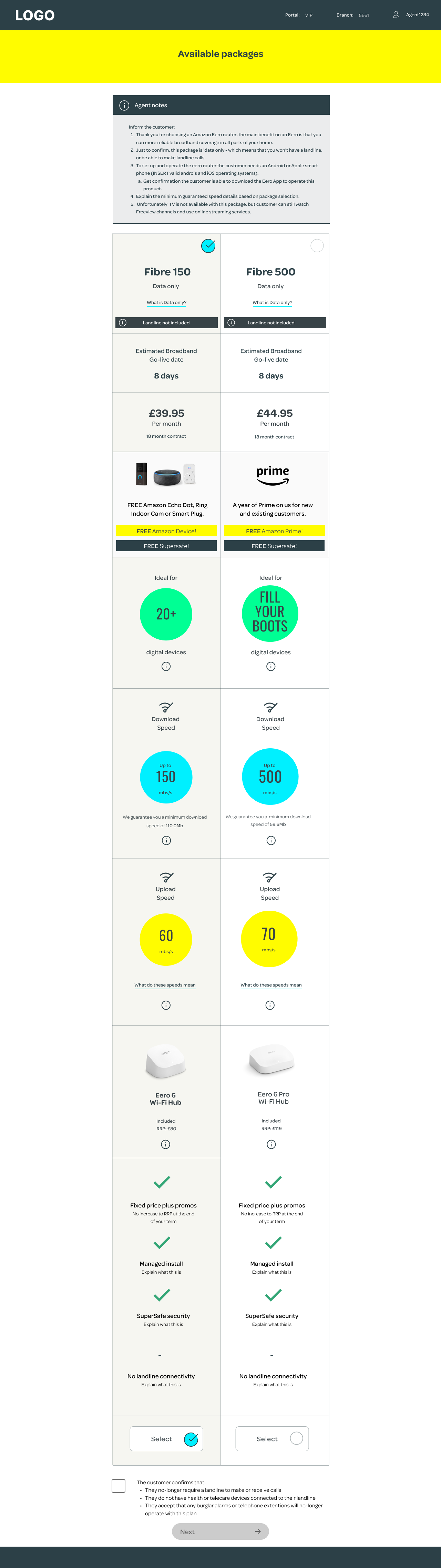 Through empathy mapping and research-driven insights, we have developed an intuitive, accessible, and efficient FTTP sales portal that addresses the key needs and frustrations of our sales agents. The new portal features simplified navigation, integrated compliance tools, and a streamlined credit check process. Comprehensive training resources and visual aids are readily available to support agents in their roles. Real-time feedback mechanisms enable continuous improvement. This user-centric design has significantly enhanced agent satisfaction and improved the overall customer onboarding experience, aligning with our goals of efficiency and compliance.