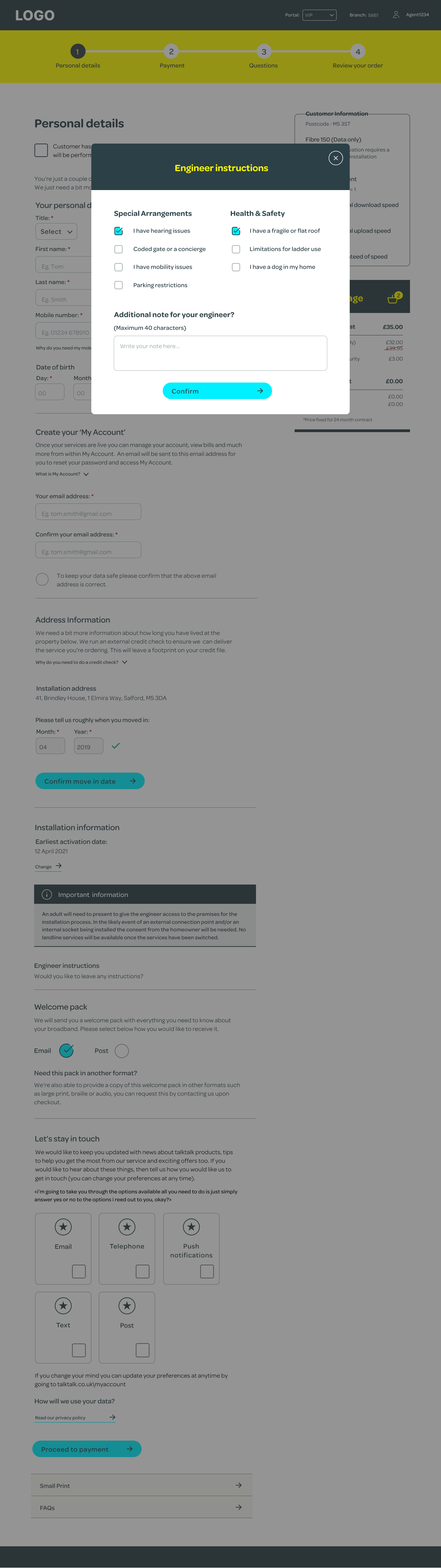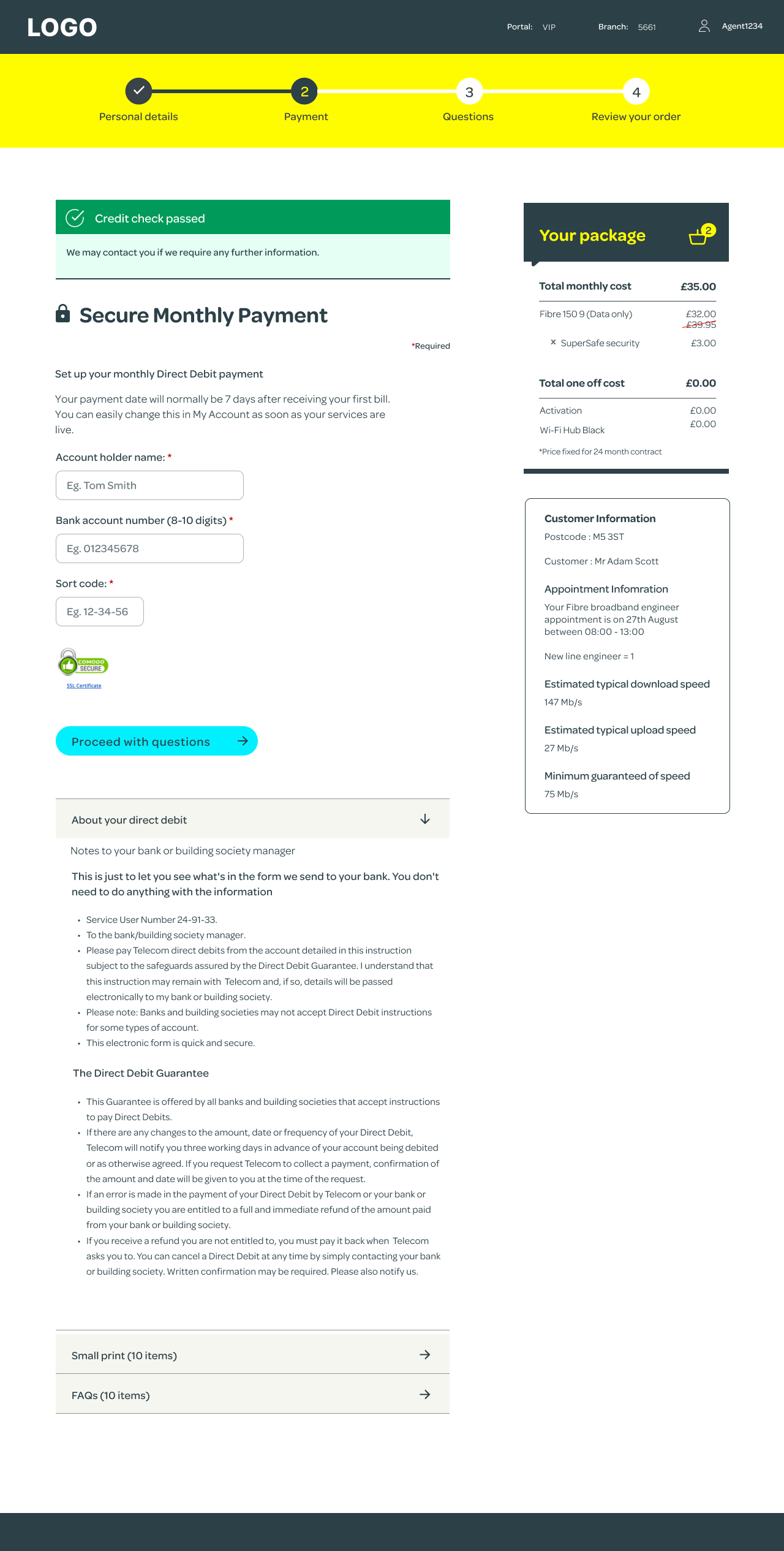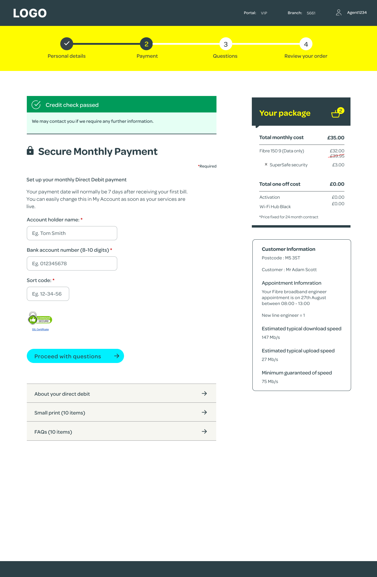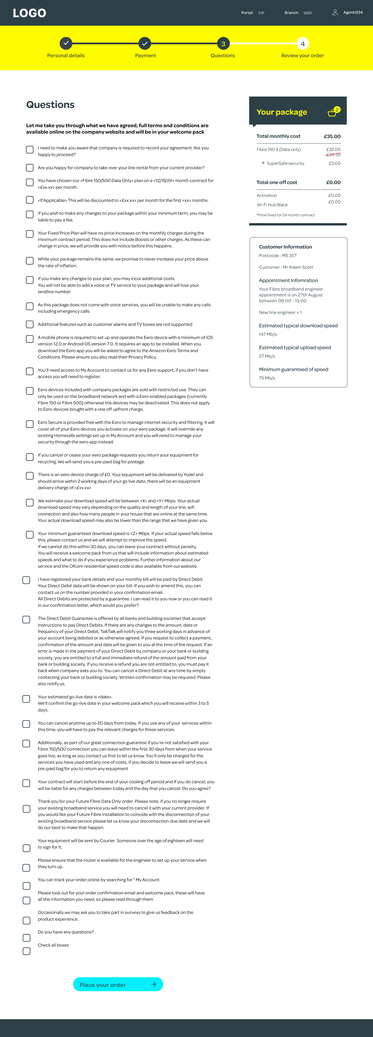 Through empathy mapping and research-driven insights, we have developed an intuitive, accessible, and efficient FTTP sales portal that addresses the key needs and frustrations of our sales agents. The new portal features simplified navigation, integrated compliance tools, and a streamlined credit check process. Comprehensive training resources and visual aids are readily available to support agents in their roles. Real-time feedback mechanisms enable continuous improvement. This user-centric design has significantly enhanced agent satisfaction and improved the overall customer onboarding experience, aligning with our goals of efficiency and compliance.
