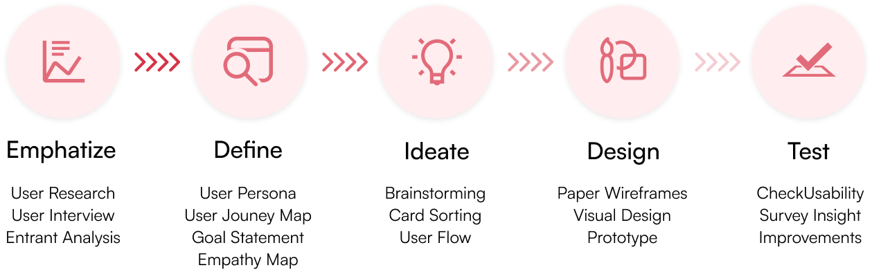 Design thinking is an iterative, non-linear process which focuses on a collaboration between designers and users. It brings innovative solutions to life based on how real users think, feel and behave.